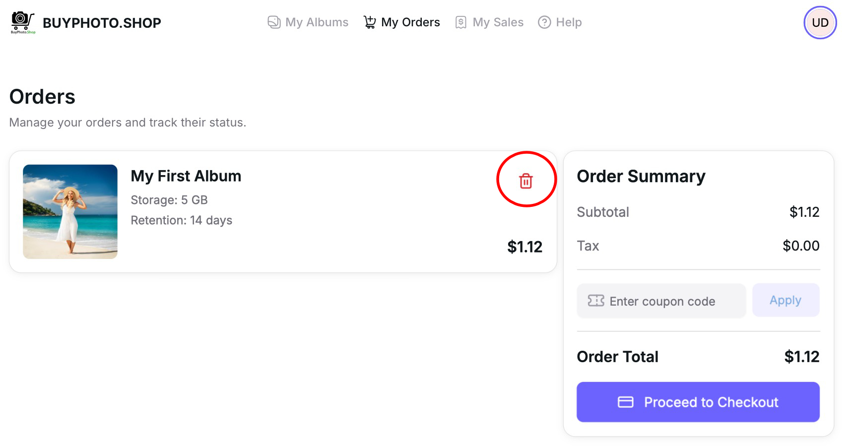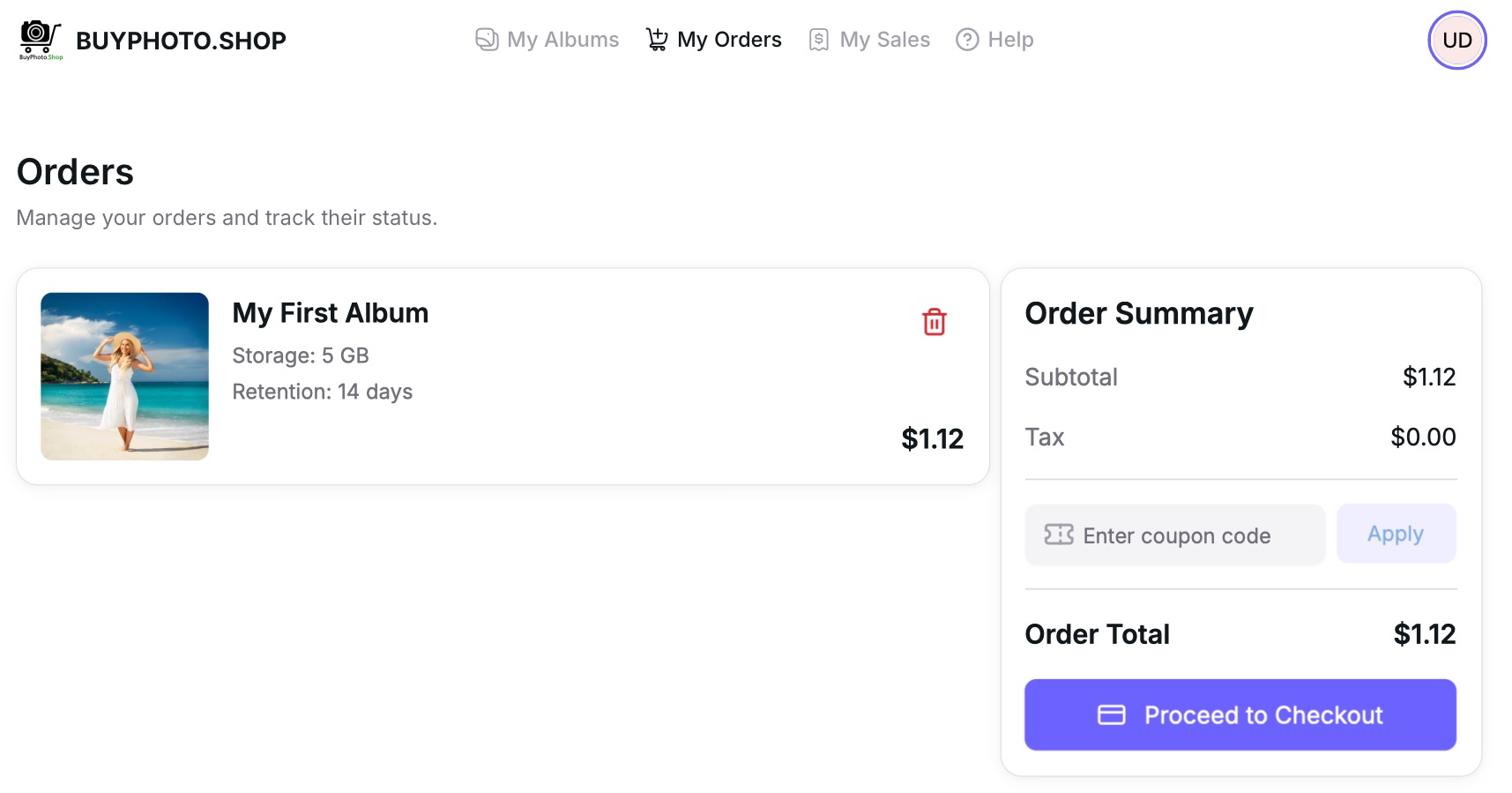 Complete the order by paying for it using the “Proceeding to Checkout” button.